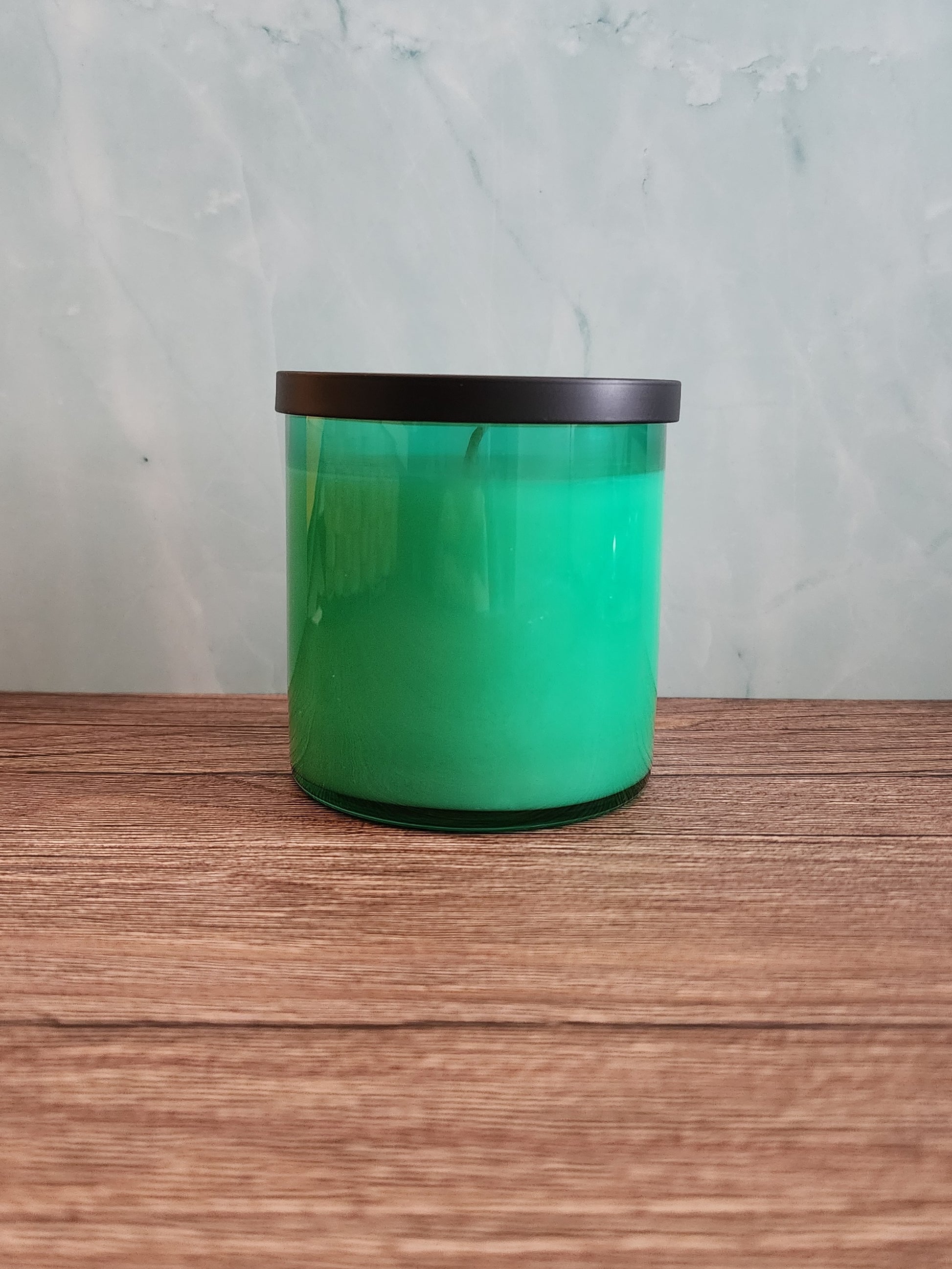 An 8.5 ounce candle in a seafoam, glass tumbler jar. Choose your scent and enjoy